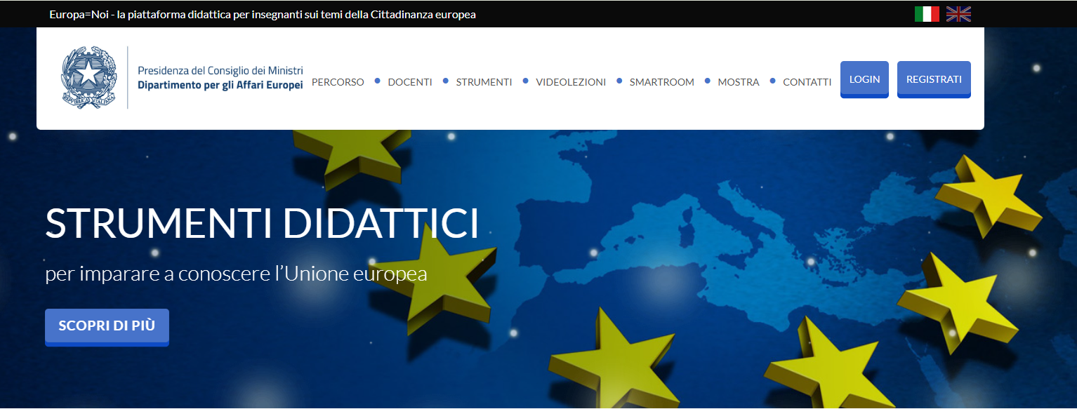 Il corso a cura del Dipartimento per gli Affari Europei della Presidenza del Consiglio dei Ministri, è un percorso di videolezioni per docenti che offre una panoramica strutturata sull’Unione Europea e sul ruolo dell’Italia. Il percorso include anche una presentazione operativa della piattaforma didattica “Europa=Noi” su EducazioneDigitale.it e un modulo metodologico sul Debate applicato ai temi della UE.